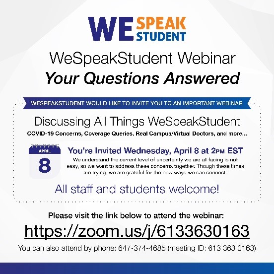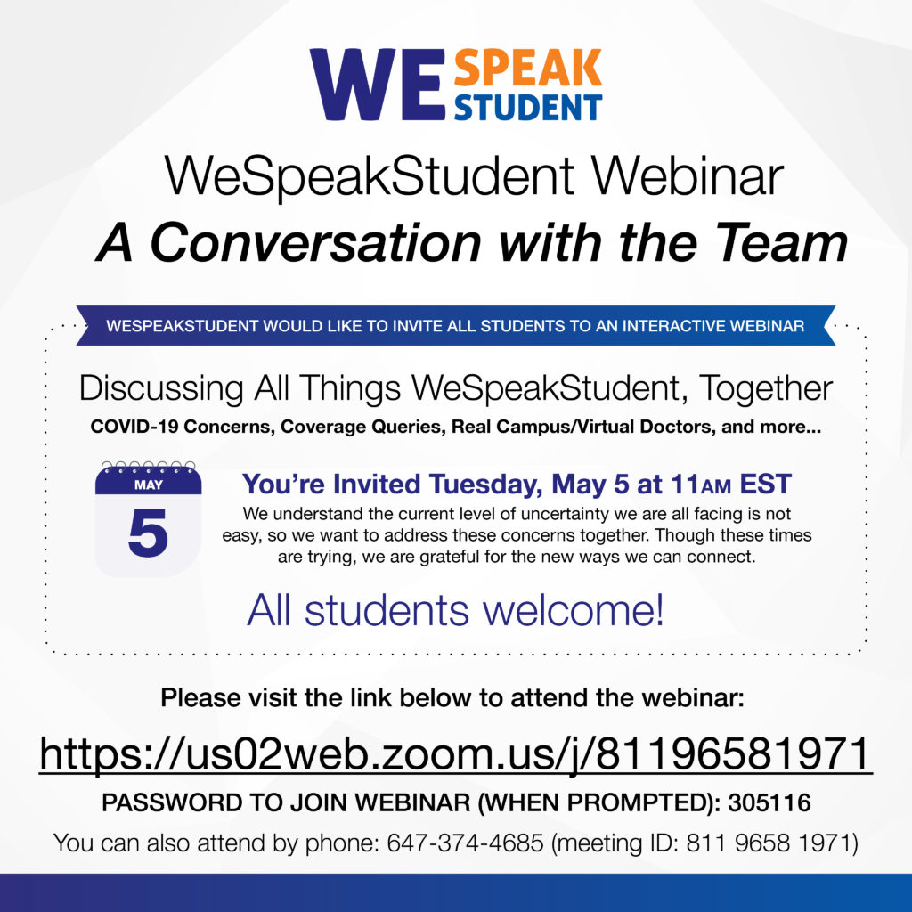 - WeSpeakStudent Webinar for DOMESTIC students, your questions answered- was April 8th at 2 pm.
